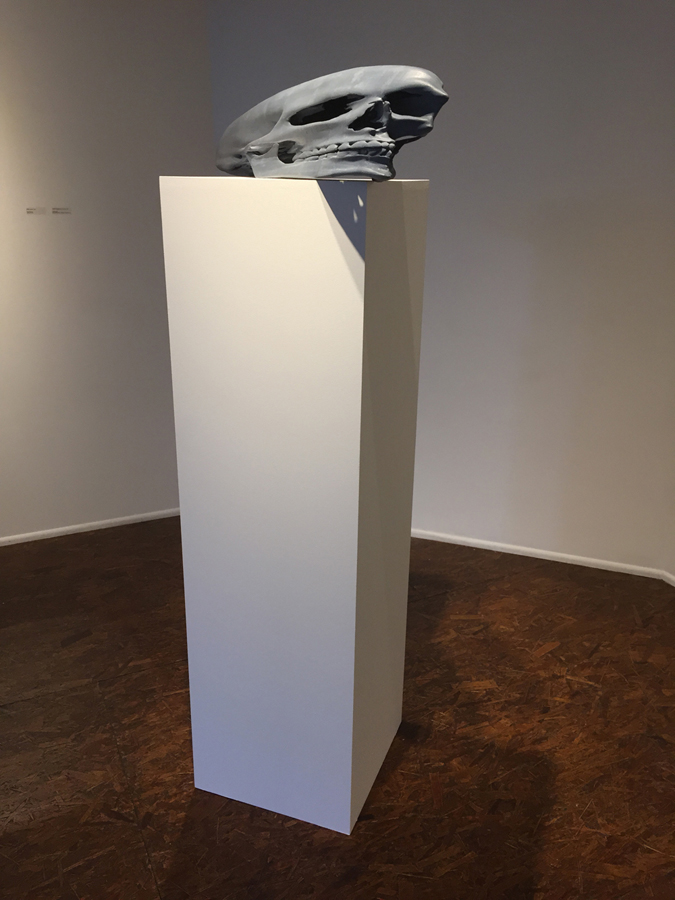 3D printed plastic (generated from CT scans of the artist's own skull)